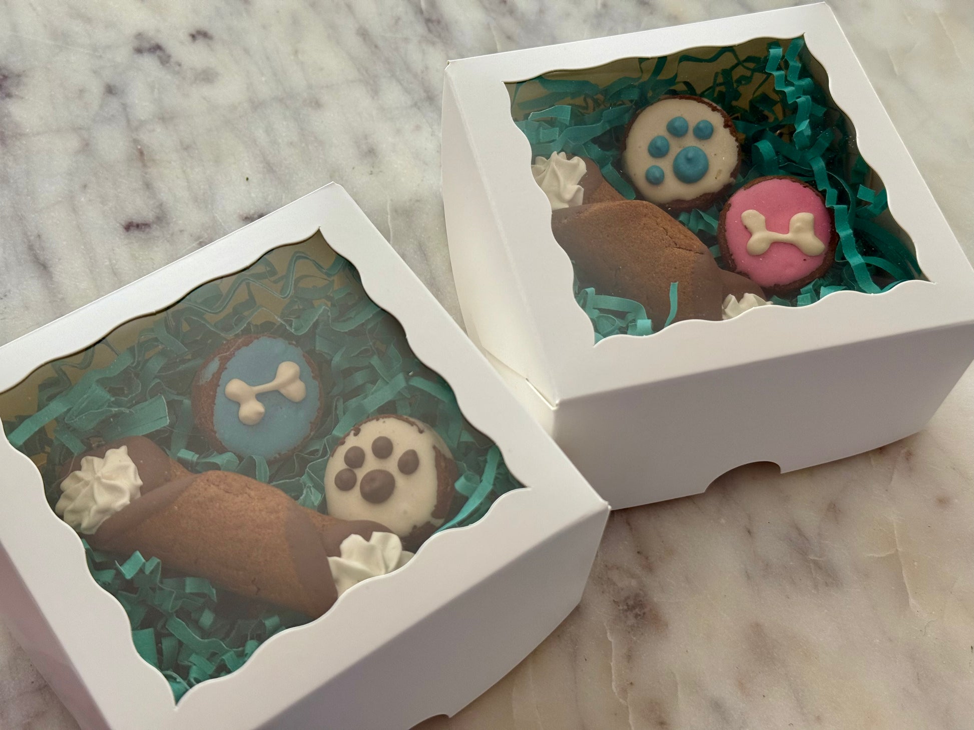 Not your average gift box - indulge your furry friend with our Holy Cannoli Barkery Box! Handcrafted with love, it features one tasty peanut butter cannoli and two mini cookies - all wrapped up with a paw-fect bow. Give the gift of love & flavor to your favorite pup! Woof it up!
