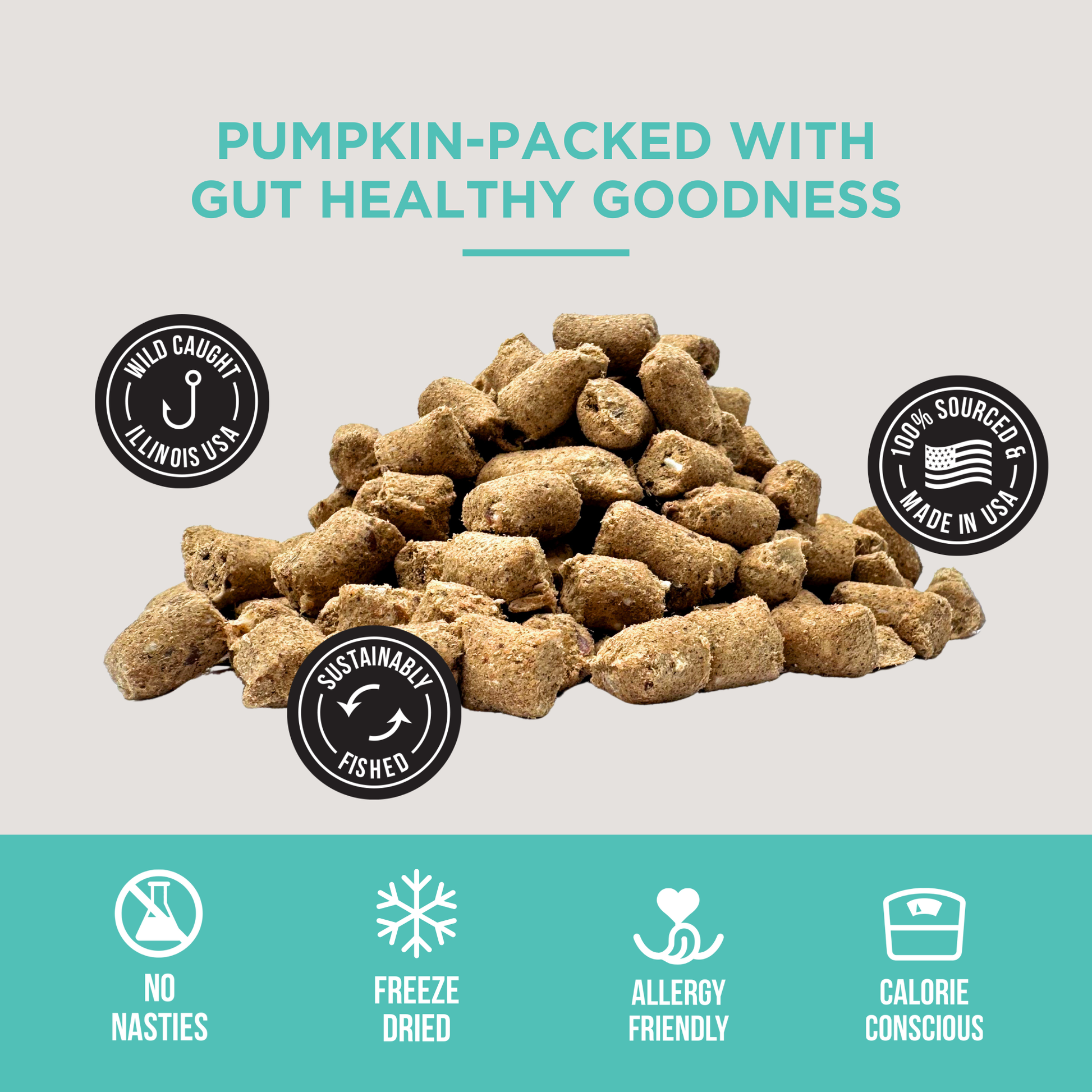 We all know there are many fish in the sea, but did you know there are actually TOO many fish in the Great Lakes? Silver Carp are an invasive species that are endangering our natural waterways, and they need to be thinned out before they invade the Great Lakes. That's where we come in. We source flaky, tasty, wild caught Silver Carp that is a healthy, top feeding fish an pair it with pumpkin, flaxseed an cold-pressed coconut oil for our limited ingredient treats! What truly makes our fish treats different is this: we partner with local, Illinois fisherman to source Silver Carp and then freeze dry them at their peak nutritional moment making them the perfect gill-ty pleasure for your pup without scaling back on quality & flavor!